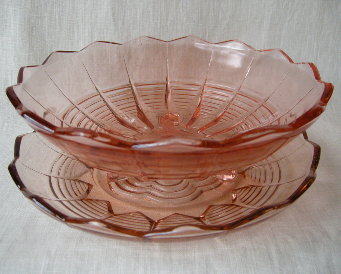 Vaak zette men in zo’n schaal een bloemsteker met tafelstuk om er bloemen in te doen bij een gedekte tafel. Hoe meer opschik hoe beter was het motto.