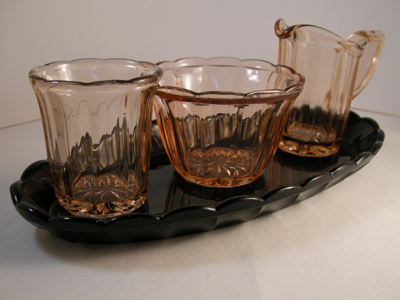 Bij de foto’s: Er is voor gekozen de voorwerpen zo groot mogelijk af te beelden om alle details goed laten zien. Met als nadeel dat je de dimensie niet in beeld hebt, vandaar ook dat alle maten opgenomen zijn. Het fotograferen van roze glas is lastig. Vooral door de vele kleurverschillen van het roze glas en de verschillende glasdiktes. Waardoor het licht steeds anders breekt en foto’s na elkaar genomen van 2 items geheel qua tint kunnen verschillen.